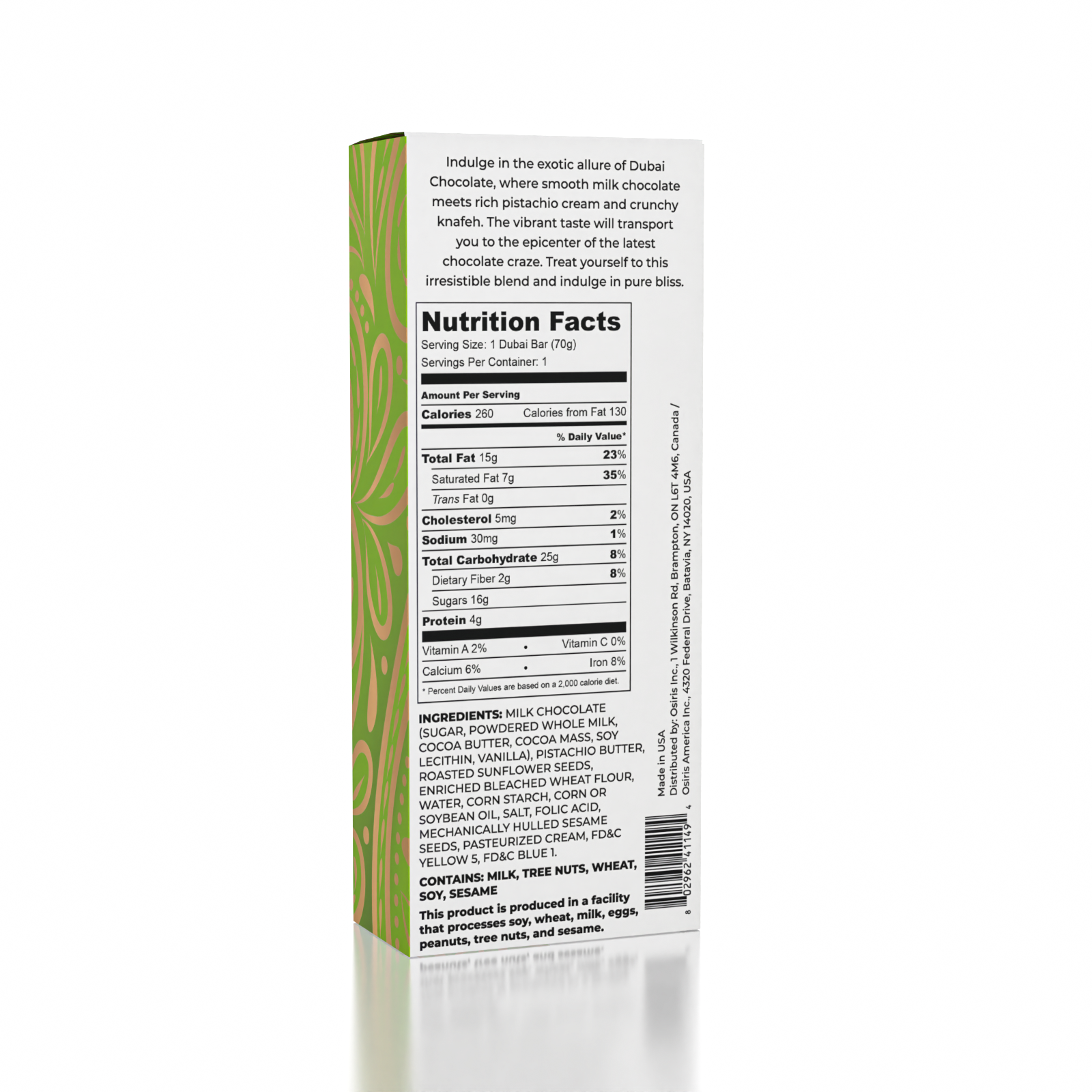 Discover the viral sensation your customers can’t get enough of — the Oasis Treasures Knafeh Pistachio Dubai Chocolate Bar! Featuring rich milk chocolate, pistachio-infused white chocolate, and a crunchy knafeh center, this 70g (2.45oz) bar is handcrafted in the USA and comes in full retail packaging with a PDQ display — ready to fly off your shelves. We are North America’s largest wholesaler of Dubai Chocolate, with over 1.4 million bars sold and 5,000+ happy repeat wholesale customers. Made in the U.S. Shelf-ready PDQ packaging Fast, temperature-controlled shipping Stock the luxury your customers are asking for!