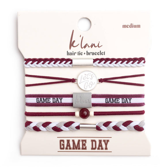 "Game Day" Maroon/Gray Hair Tie Bracelets : Medium