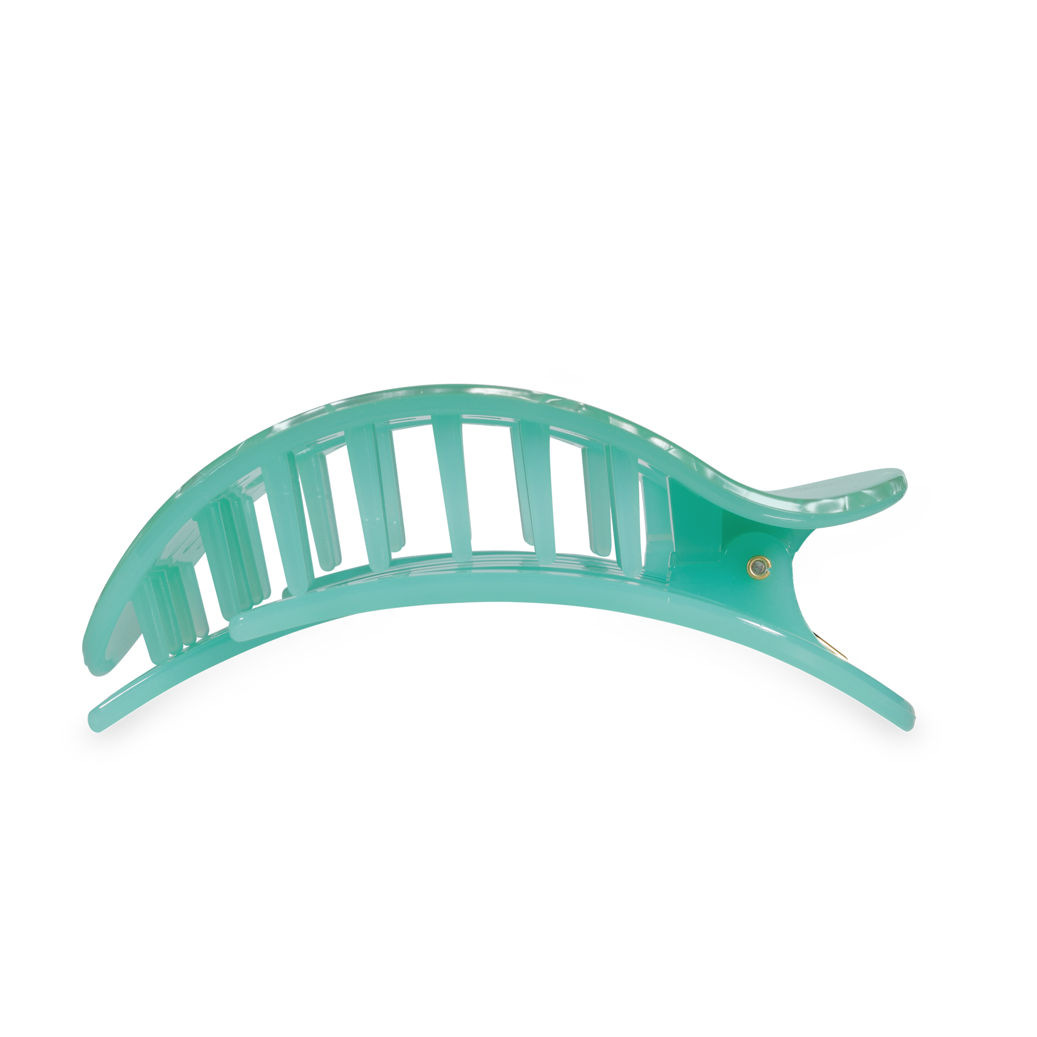 Lay flat and relax with the new TELETIES Spring Splash Large Flat Round Hair Clip in Green. This hair clip is designed to allow you to lay back flat, do yoga, or sit comfortably in a seat with a headrest, and it is made with the same material that is nearly unbreakable.
