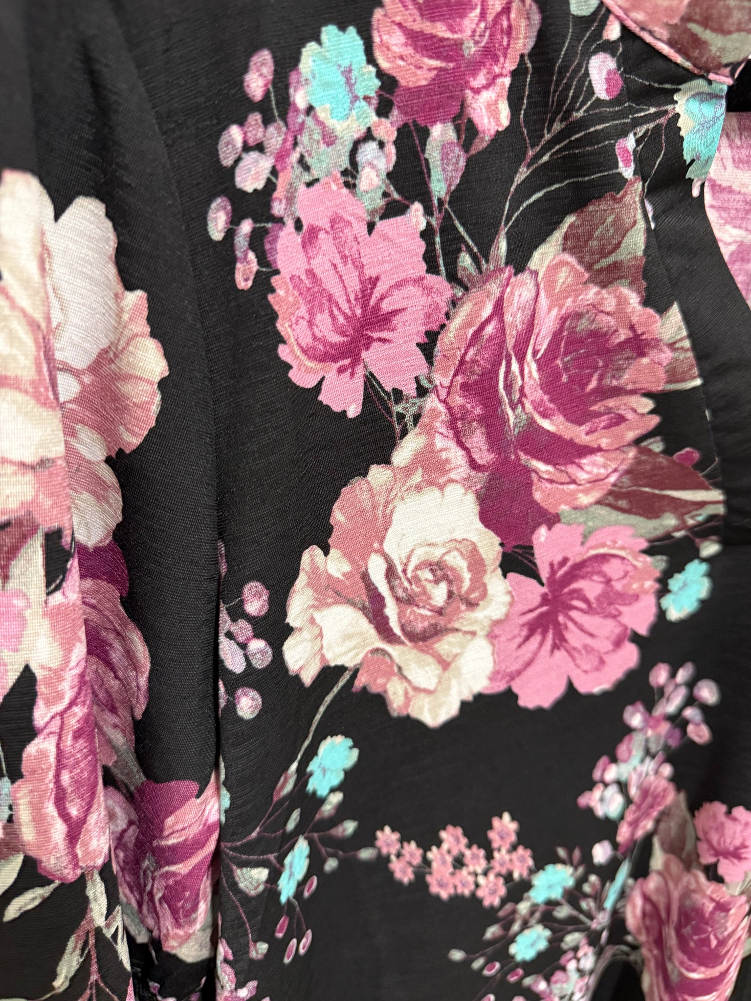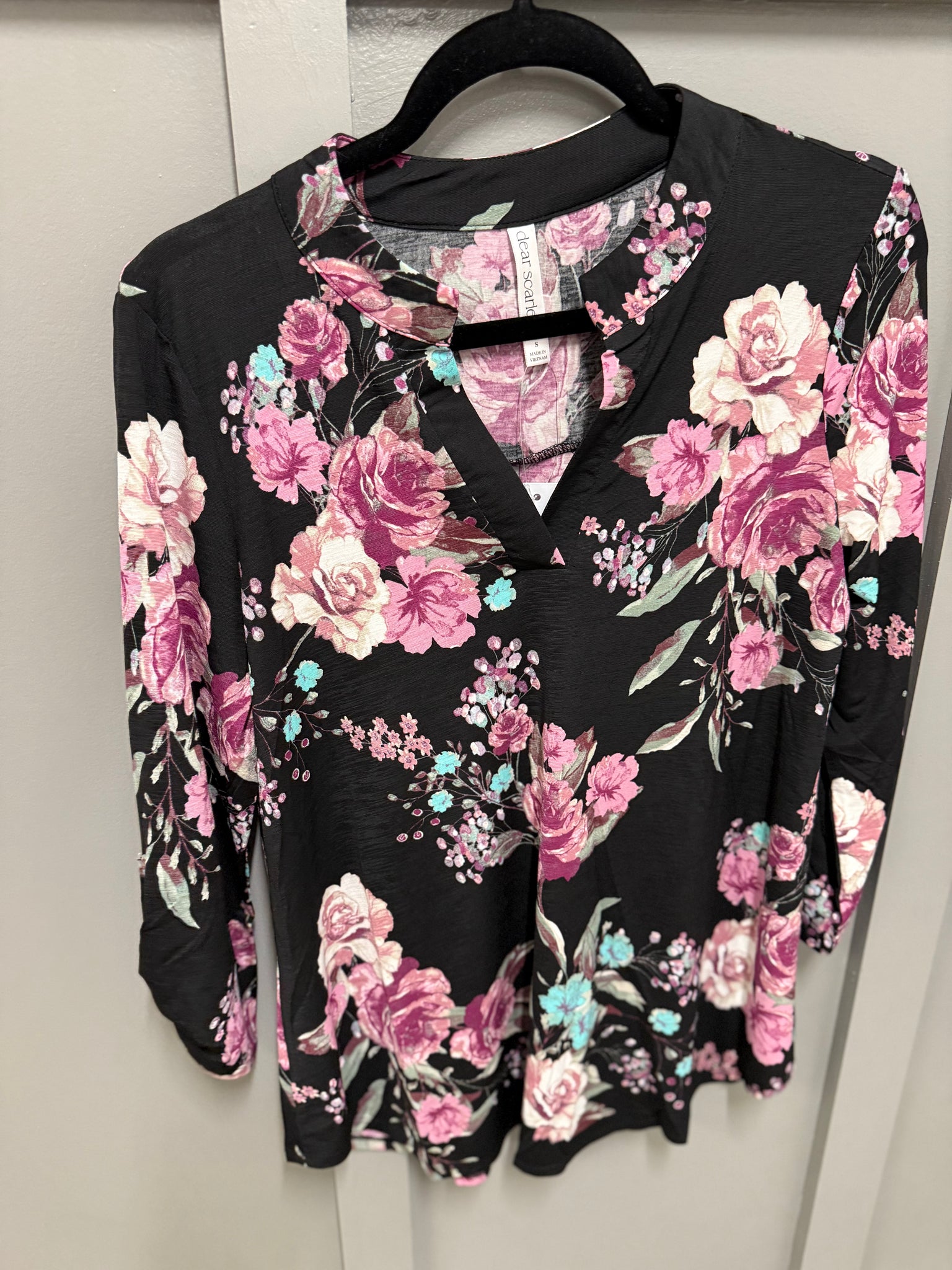 Gabby Button Top in Black Pink Floral