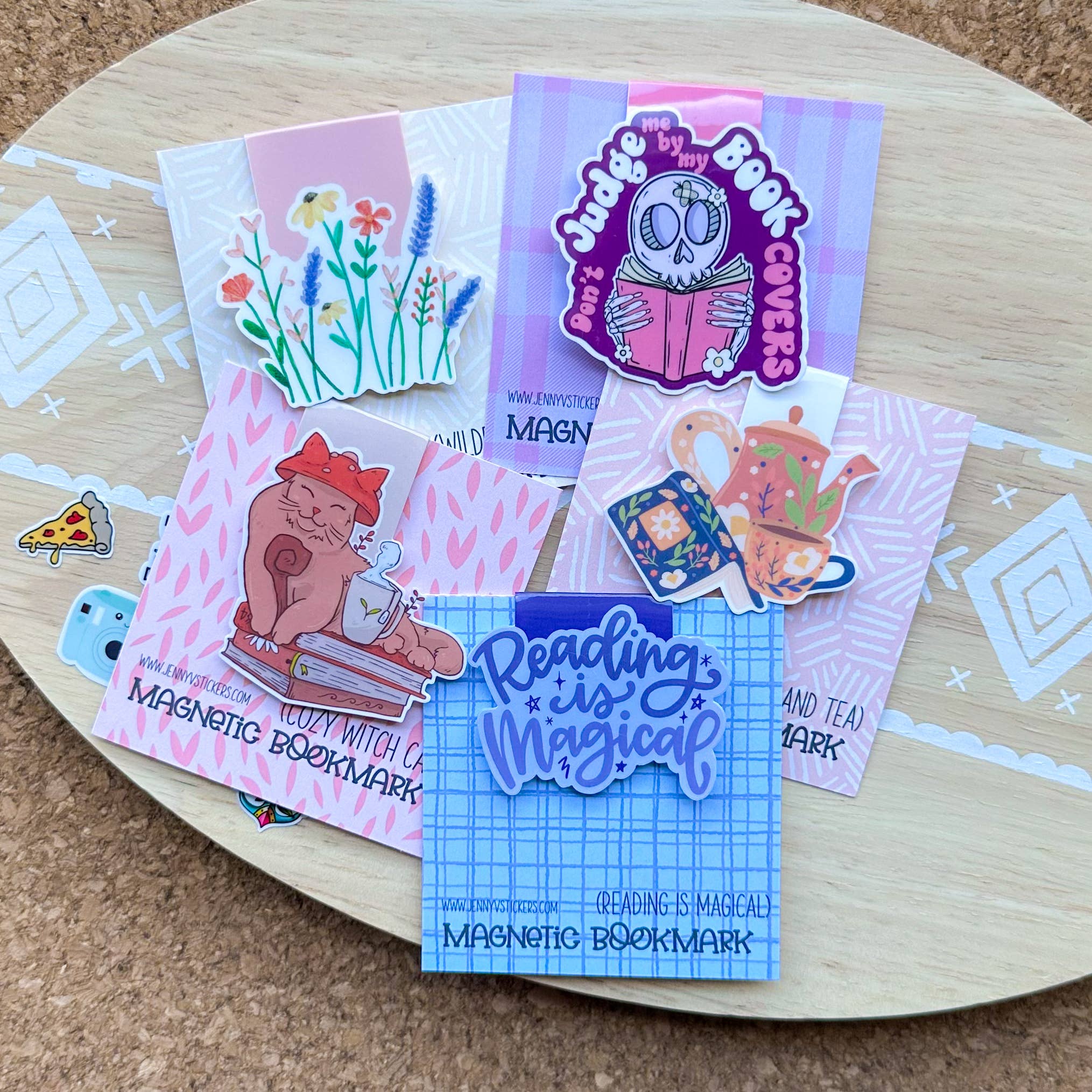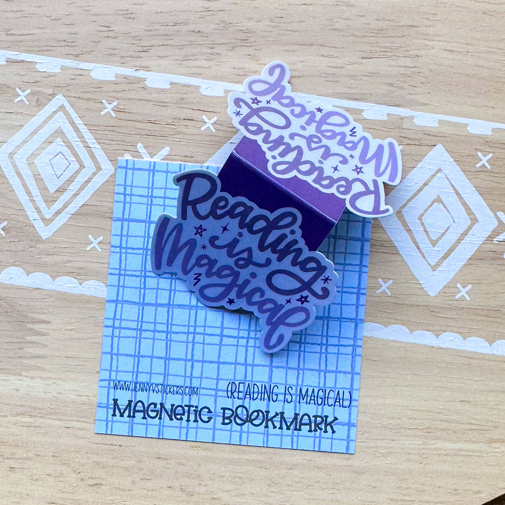Full color back and front glossy printed and double sided laminated magnetic bookmark *magnetic bookmarks are glossy and thick with a smooth plastic like finish *each bookmark is made with high quality archival 100lb card stock and laminated on both sides *magnets are strong and can hold several pages at once. * Each bookmark is 2” wide * All bookmarks are printed on 100lb card stock, glossy laminated on both sides, and have rounded corners *Bookmarks are individually packed with retail backer as shown in listing photo.