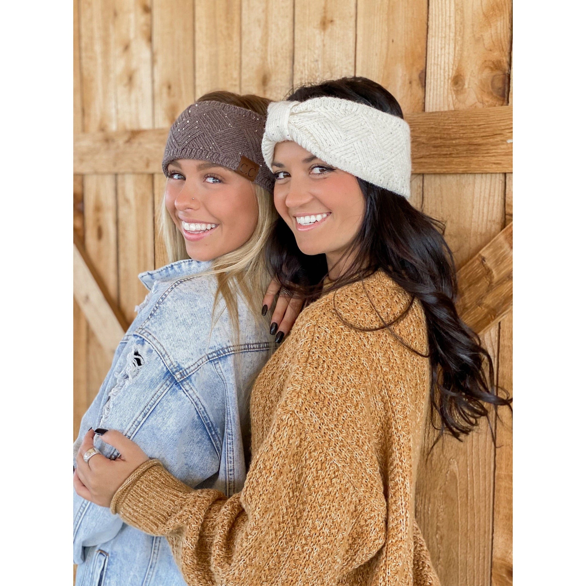 Cream Sequin Brioche Cable Knit C.C Headband