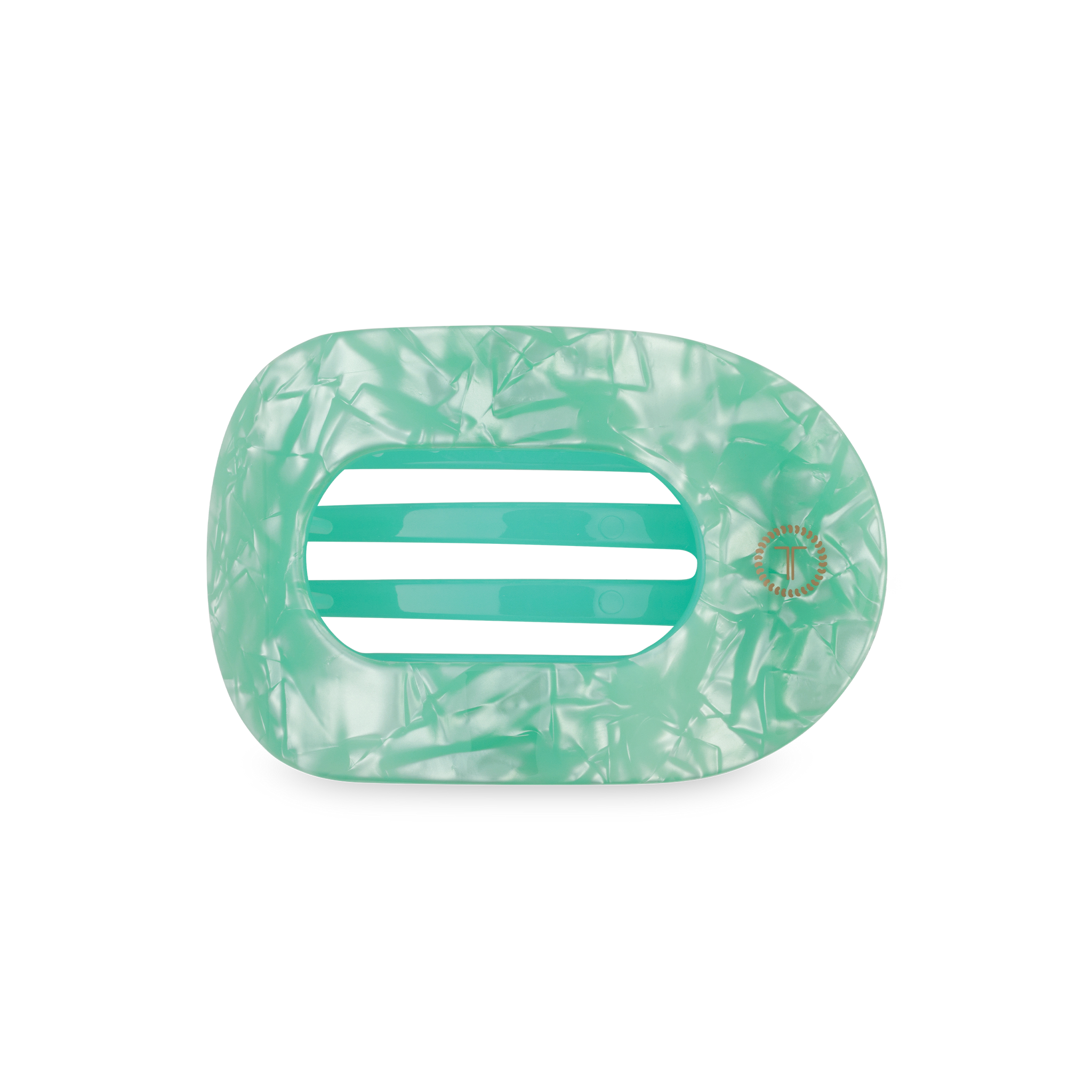Lay flat and relax with the new TELETIES Spring Splash Medium Flat Round Hair Clip in Green. This hair clip is designed to allow you to lay back flat, do yoga, or sit comfortably in a seat with a headrest, and it is made with the same material that is nearly unbreakable.