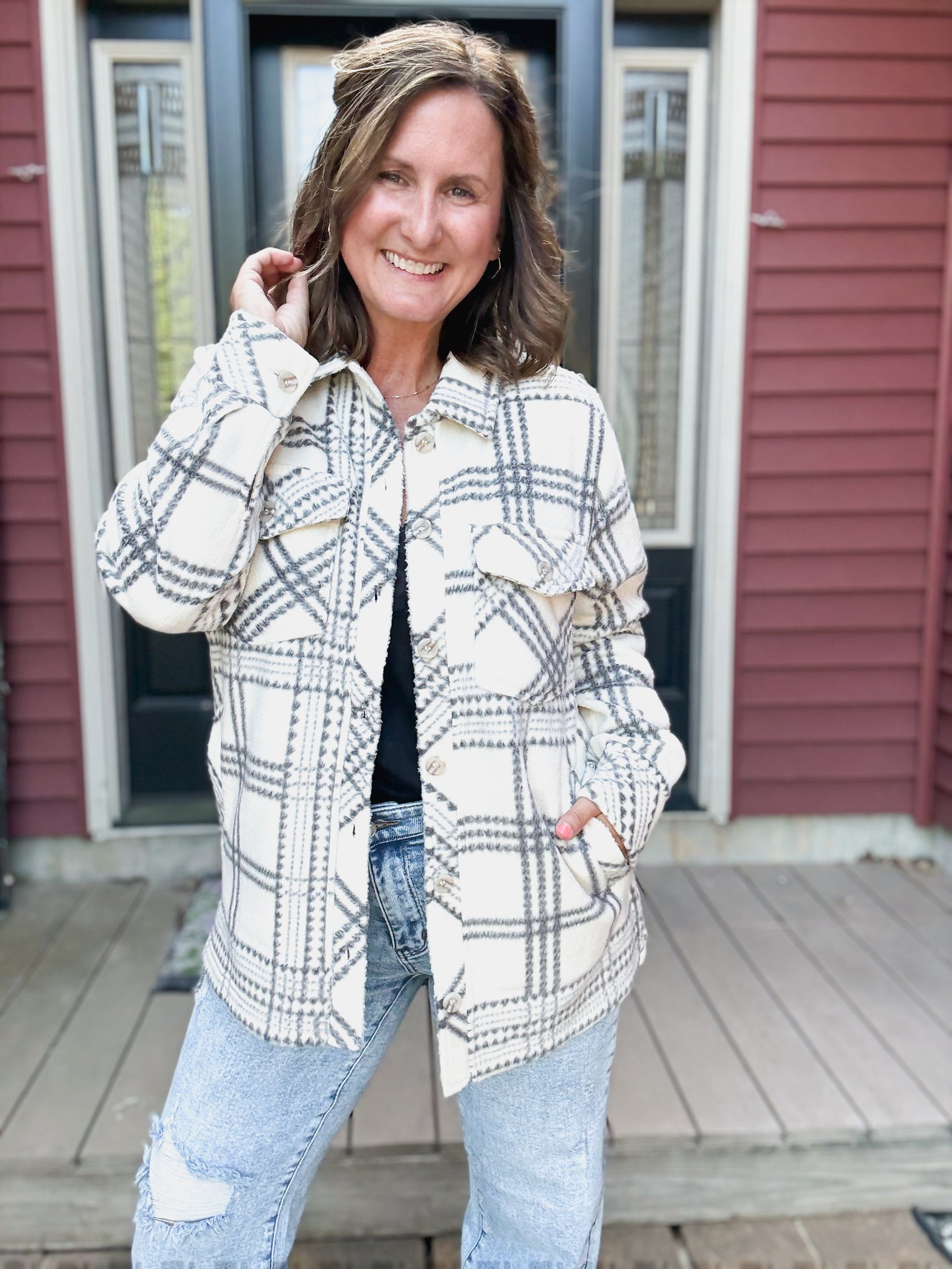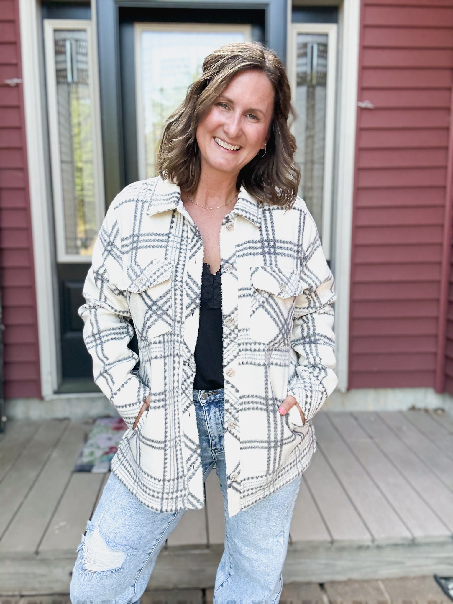 Santa Fe Shacket in Ivory Grey Plaid