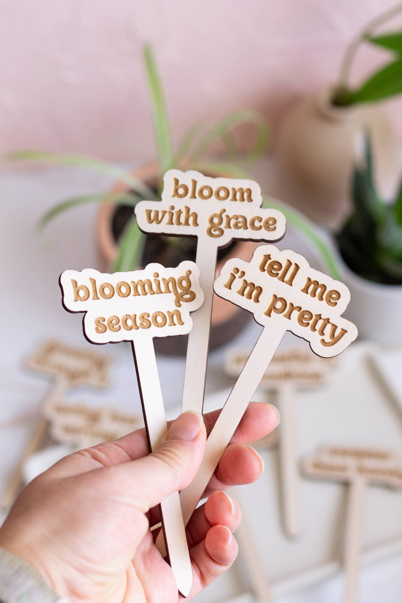 These laser-engraved Spring-inspired funny wooden plant markers make an adorable addition to your potted indoor plants or garden. Give your plants personality by choosing your favorite plant sayings! These make for the best gift to any plant lover as well!