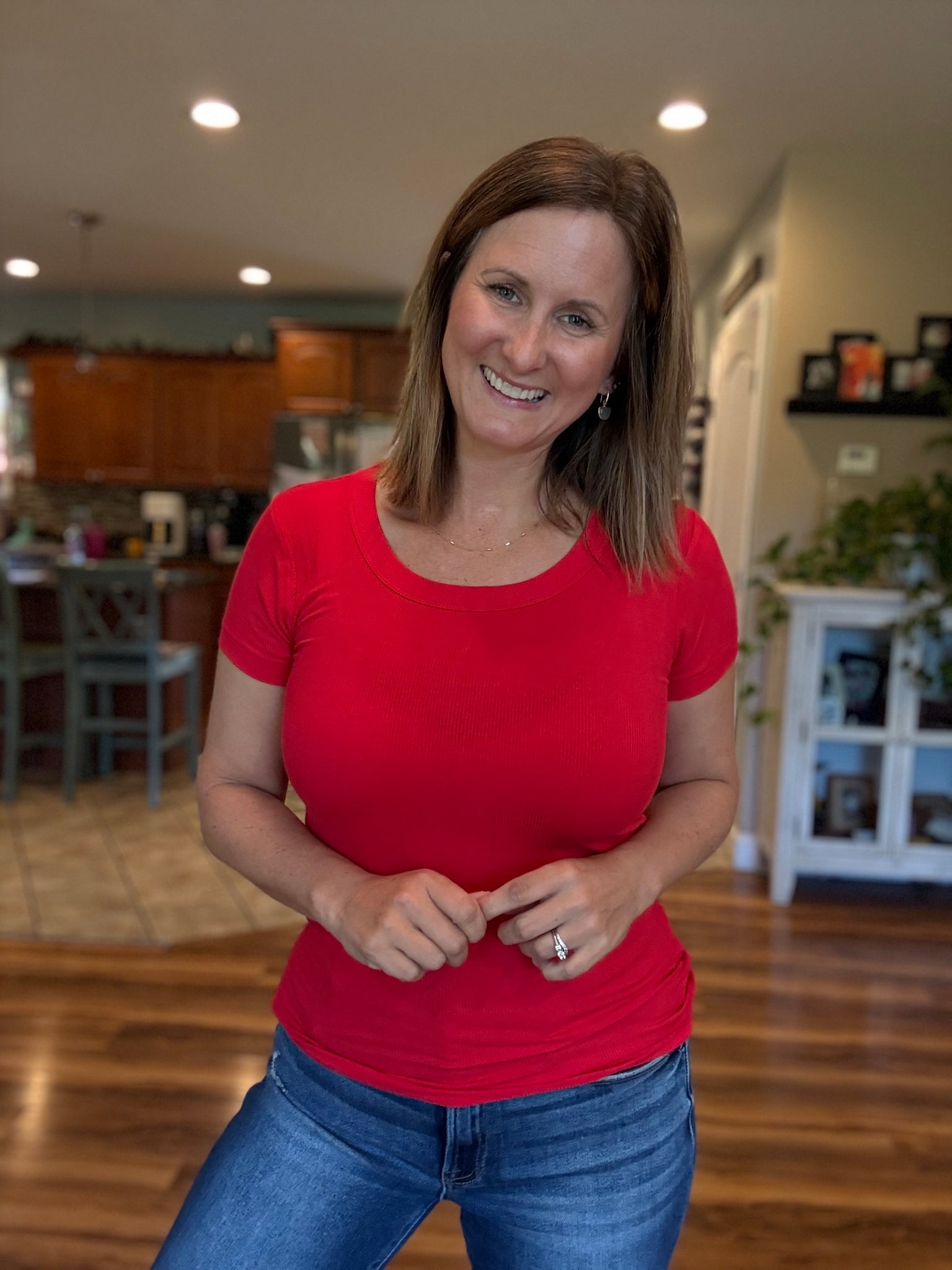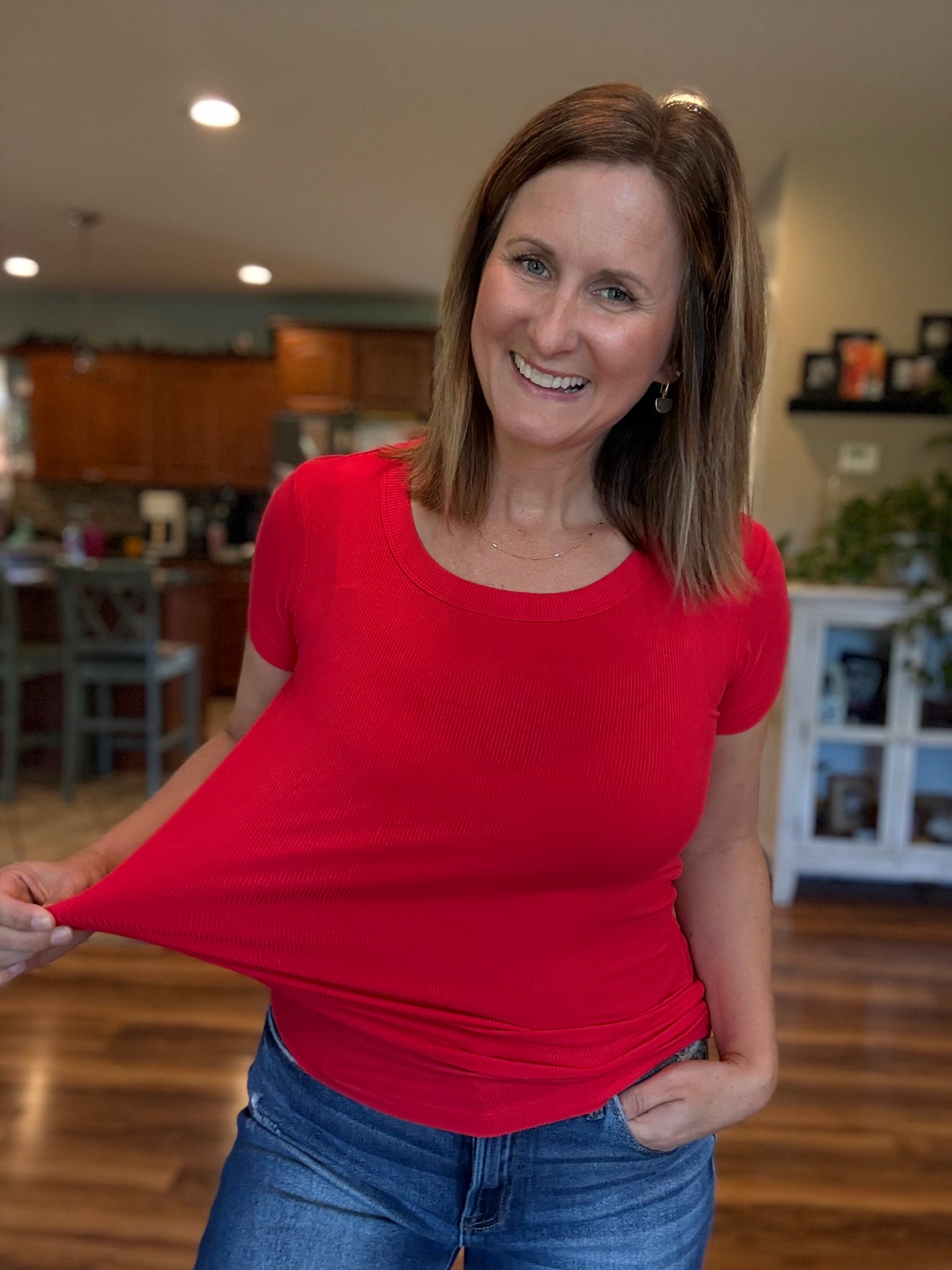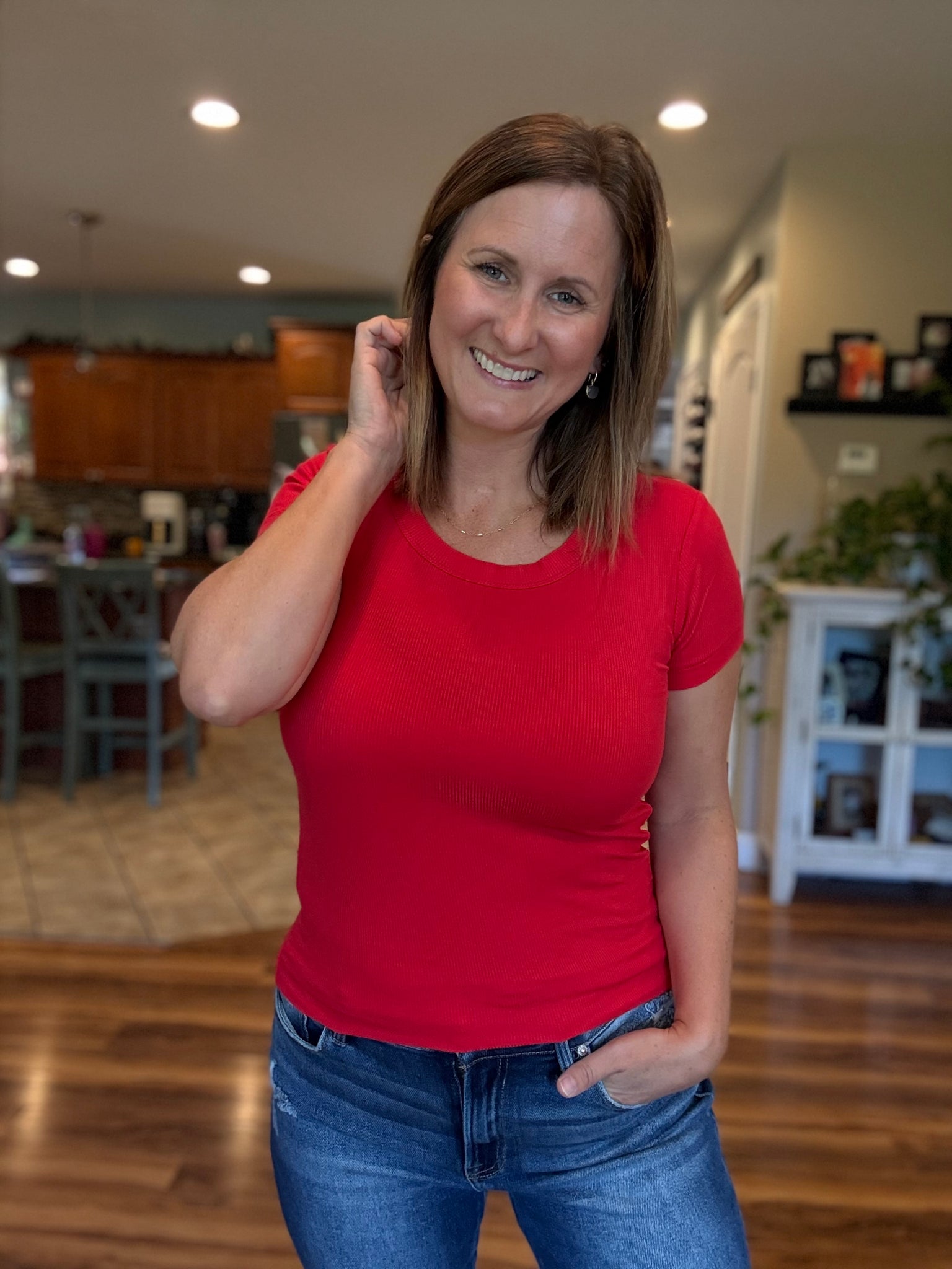 Charley Ribbed Tee in Ruby