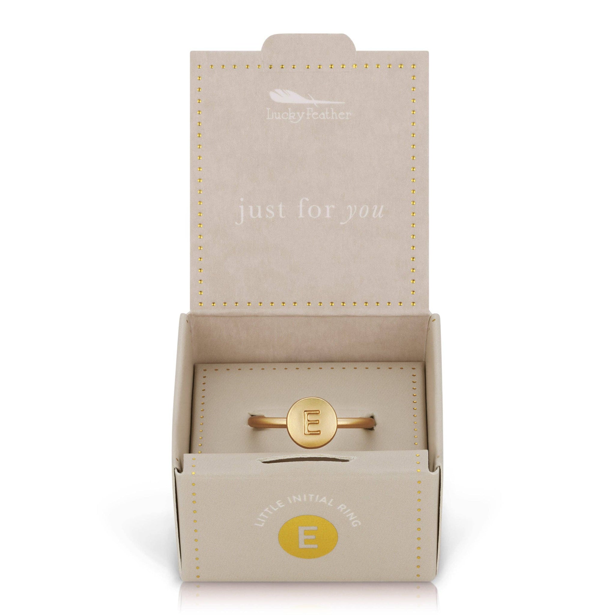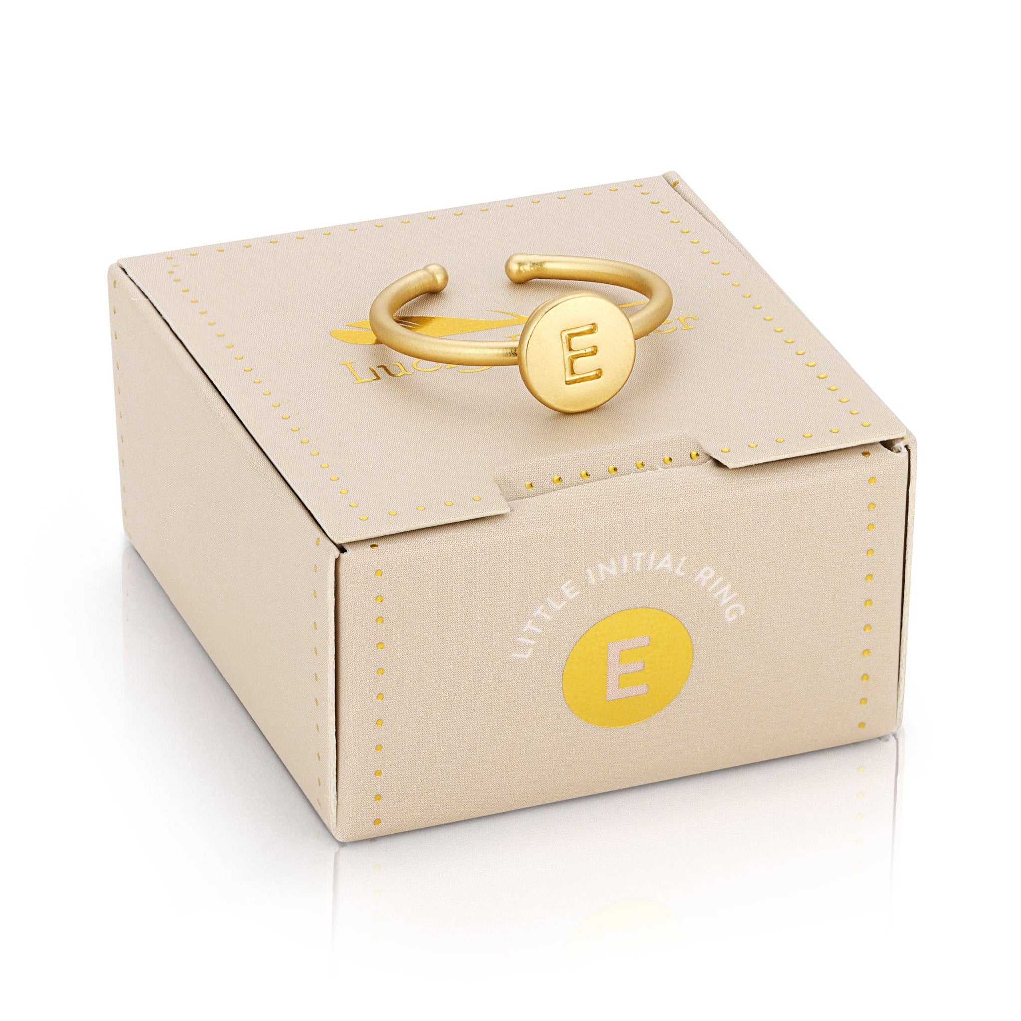 14k gold dipped, nickel-free, and adjustable signet ring with letterpress initial. Fits most ring sizes and is perfect for stacking! Comes in a unique, giftable ring box.
