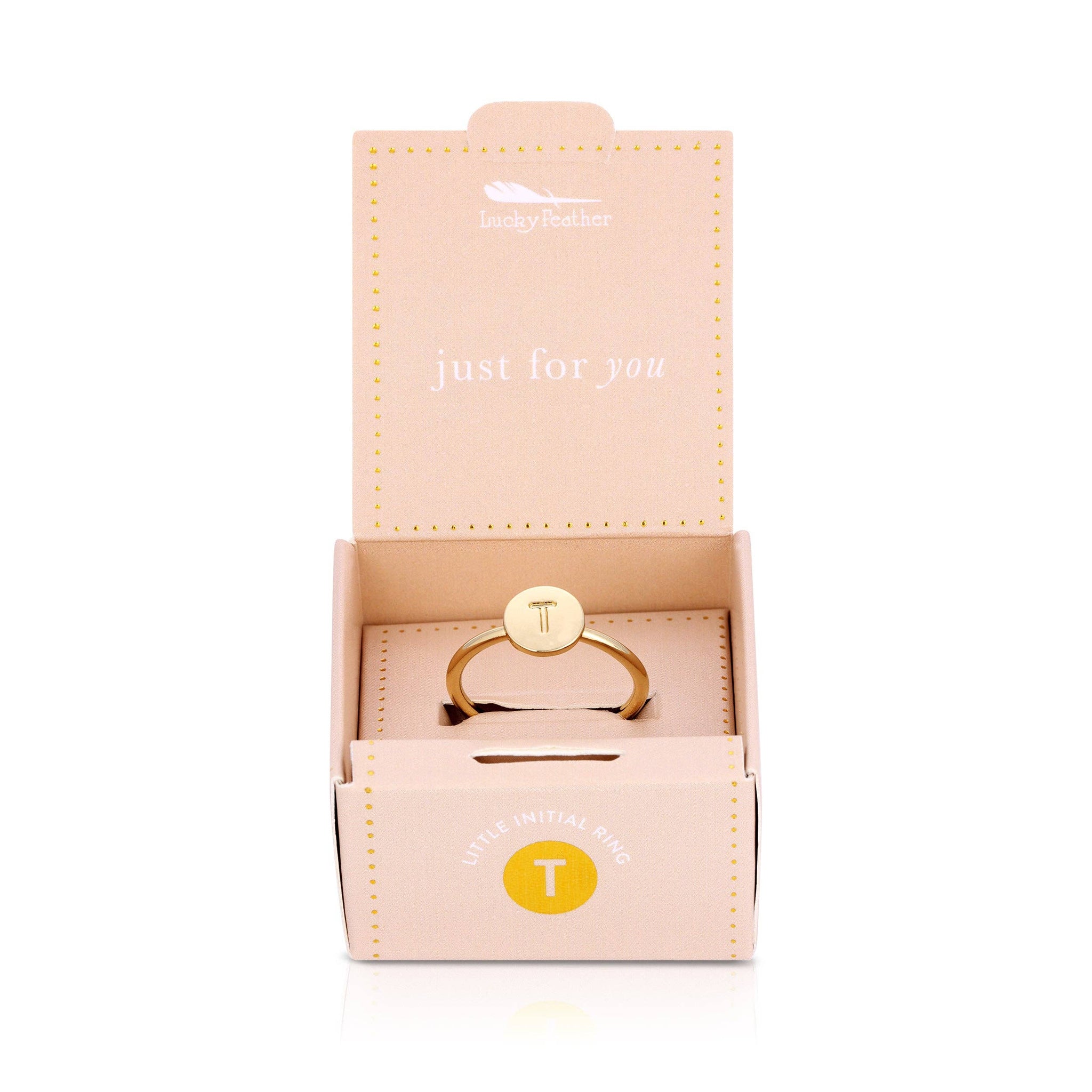 14k gold dipped, nickel-free, and adjustable signet ring with letterpress initial. Fits most ring sizes and is perfect for stacking! Comes in a unique, giftable ring box.