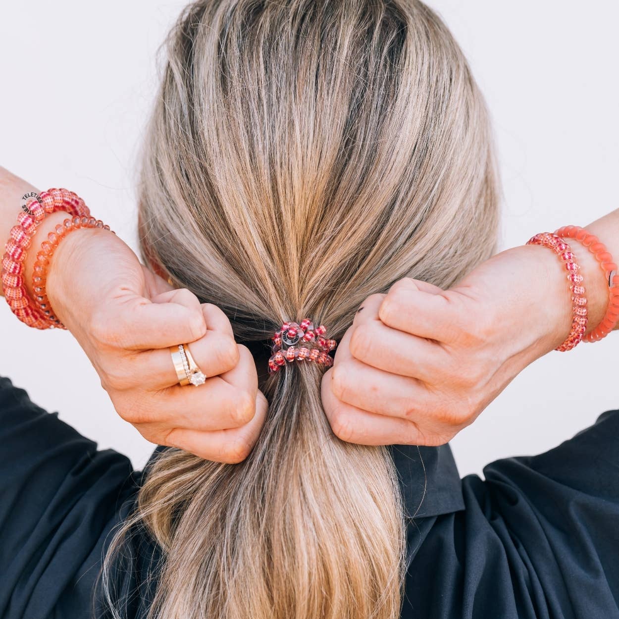 Dreamsicle Small Hair Ties in Orange and Pink offer a strong grip without damage, doubling as a chic wrist accessory when not in use. Your new favorite hair essentials all year round.