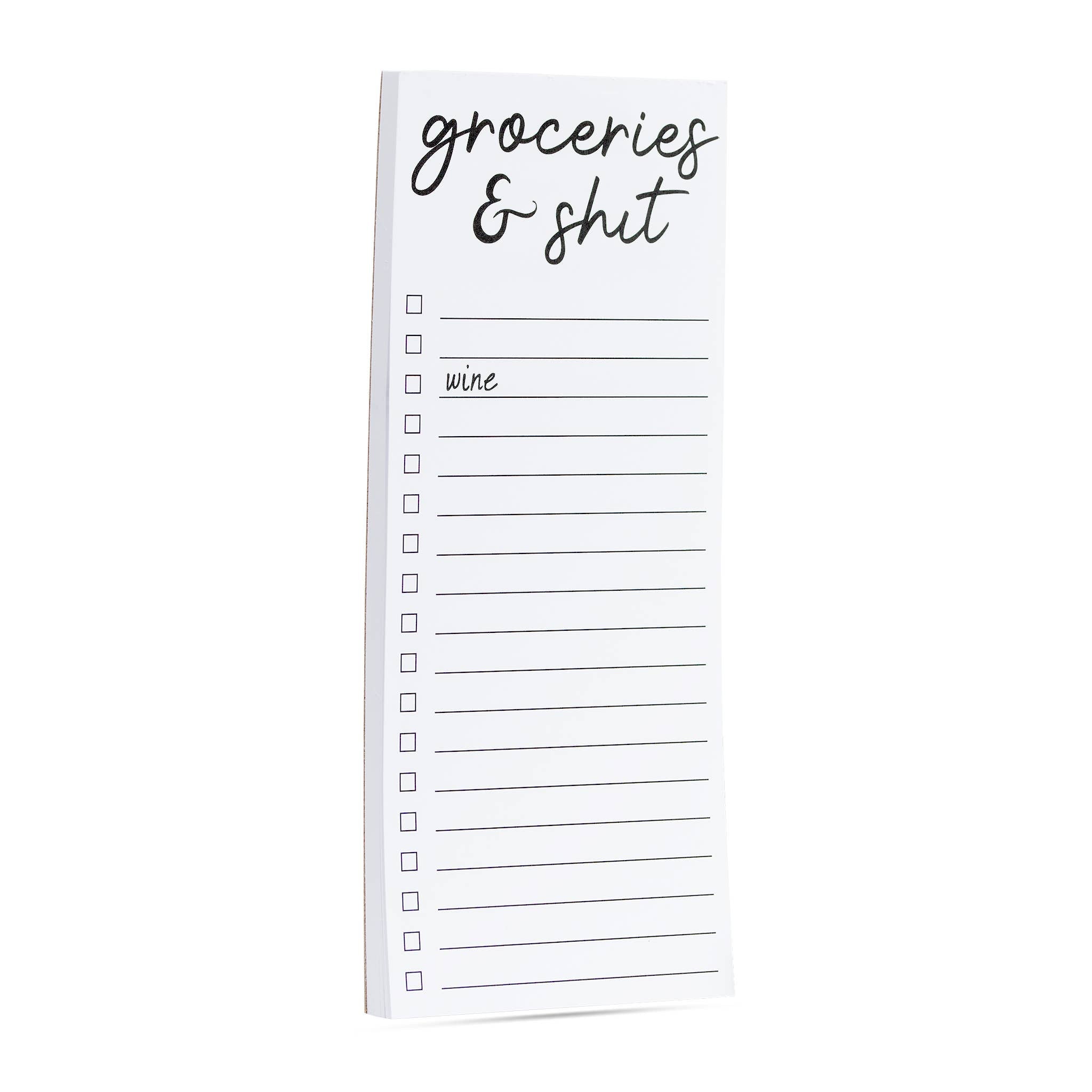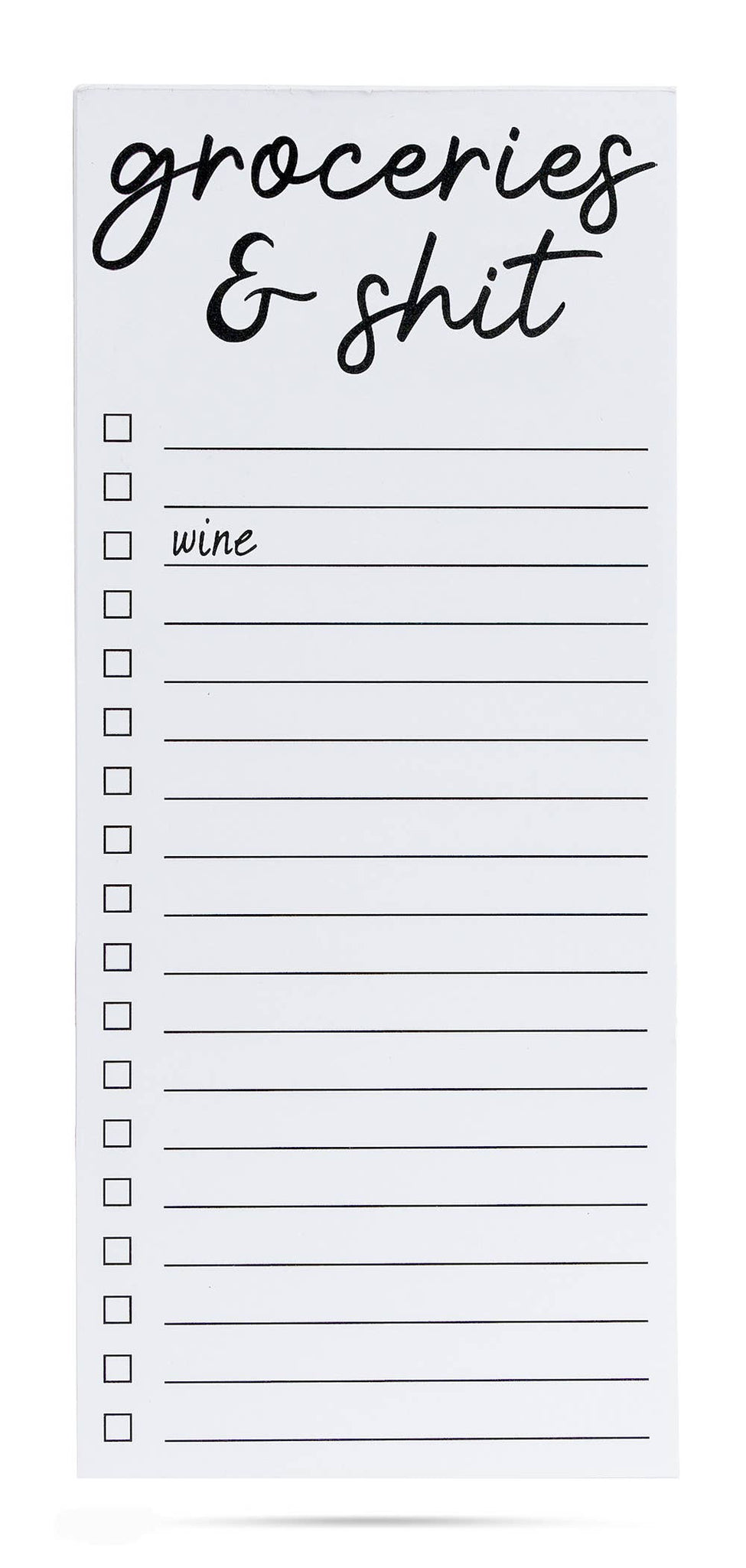 KEYWORDS: Groceries and shit wine, funny wine products, funny printed notepads with sayings on them, best selling funny paper goods, sarcastic printed products, list pads with sayings, notepads with funny sayings, high quality paper printed notepads, ellembee gift, best selling products on Faire, female made products, funny notepads wholesale, funny sarcastic notepads, funny yet practical notepads, sassy to do list note pads, sassy to do list pads, snarky printed notepads,