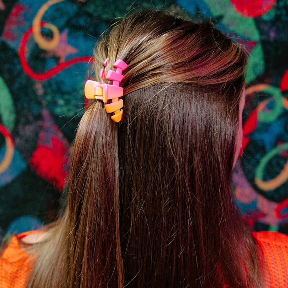 Say goodbye to breakable hair clips! We have perfected the hair tie and now have re-invented the clip. Meet the Classic Day Rave Small Claw Hair Clip in Pink and Orange crafted to elevate any hairstyle with the ideal blend of style and function. Hand-sprayed for a one-of-a-kind neon ombré—expect slight variations in each clip.