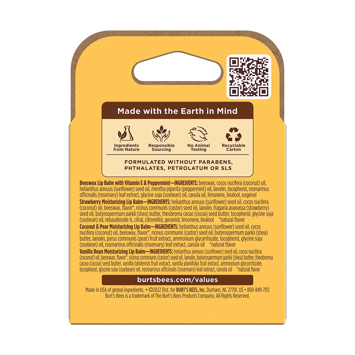 Burt's Bees Vanilla Bean Lip Balm instantly softens and hydrates your lips to help prevent dryness, cracking or chapping. Infused with responsibly sourced beeswax to richly moisturize and soothe lips, the nourishing oils and butters will make your lips juicy, happy and healthy. A matte finish keeps your lips their natural color, while the tint-free tube of lip moisturizer glides on smoothly to pamper dry lips while keeping them protected and hydrated. This Burt's Bees lip balm is bursting with vanilla flavor. Formulated without parabens, phthalates, petrolatum or SLS, this flavored lip balm is 100% natural origin to rejuvenate and beautify chapped lips with clean ingredients. You can conveniently tuck a tube of this moisturizing lip balm into your pocket or purse to keep natural, nurturing lip care at your fingertips.