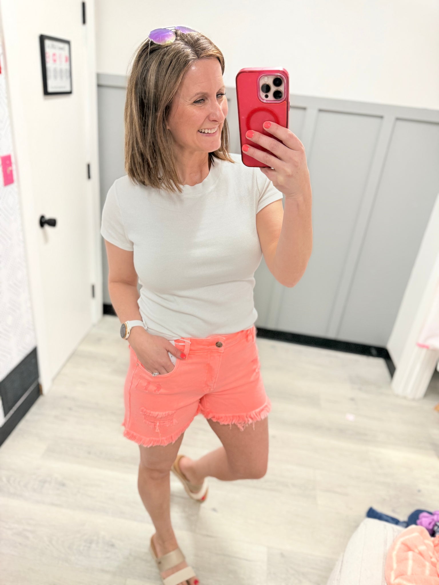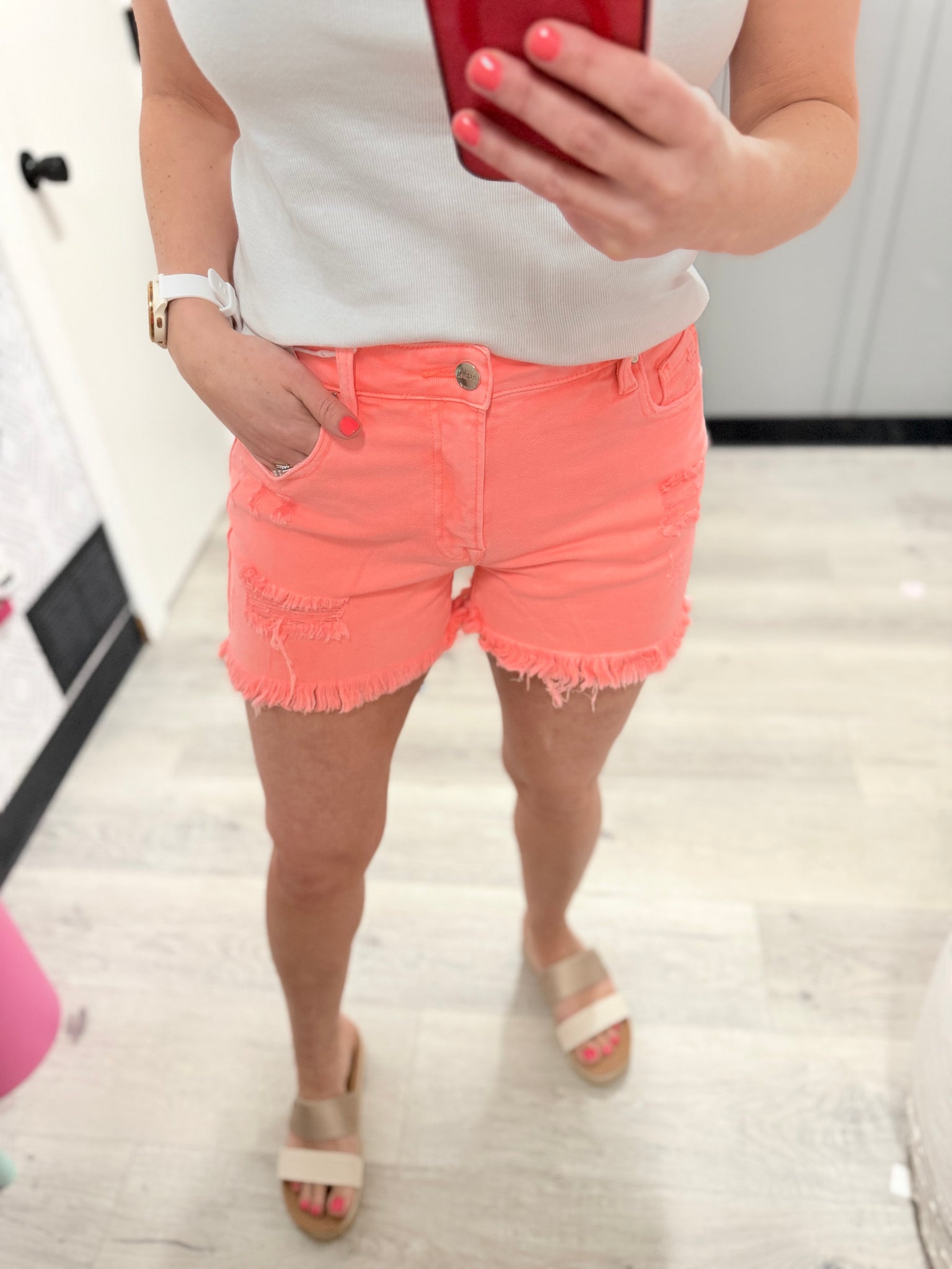 Barbie High Rise Coral Denim Shorts