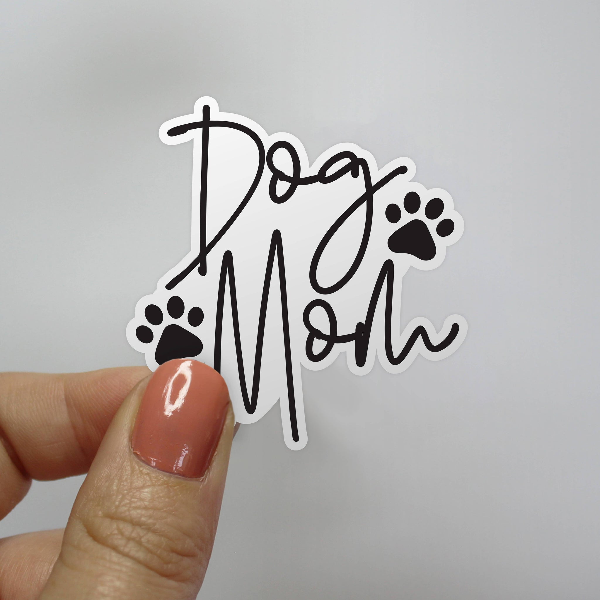 This fun sticker is perfect for your water bottle, notebook & more! The black script text reads "dog mom" with 2 paw prints. This sticker is sized to 2.5 x 2.5 inches with a glossy, water-resistant coating.