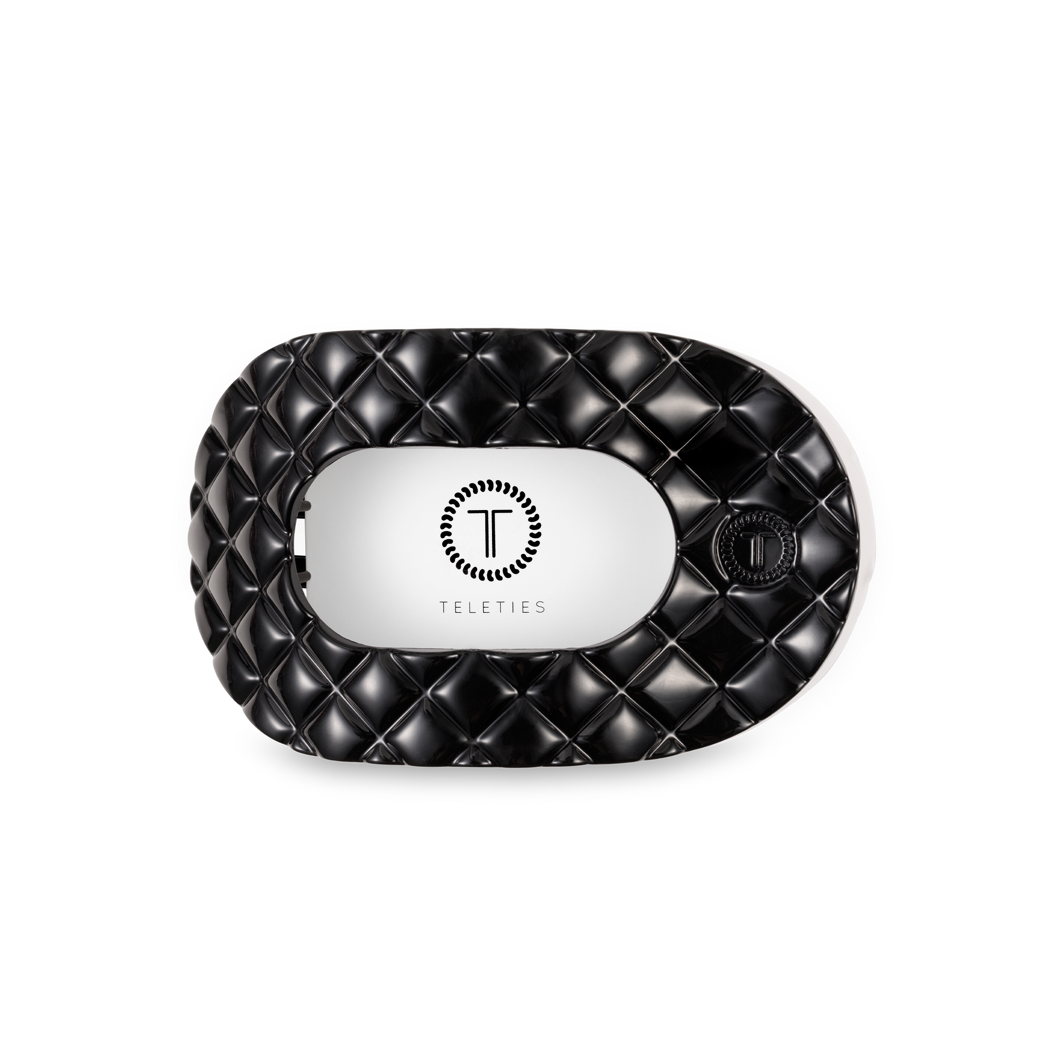 Lay flat and relax with the new TELETIES Jet Black Quilted Medium Flat Round Hair Clip in Black. This hair clip is designed to allow you to lay back flat, do yoga, or sit comfortably in a seat with a headrest, and it is made with the same material that is nearly unbreakable.