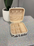 These feature a zipper closure, a 4 way small divider, several ring slots and hooks to hang necklaces!